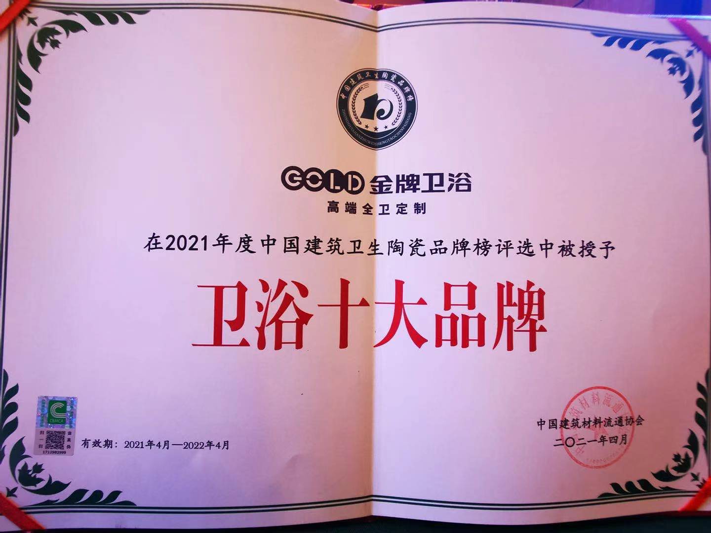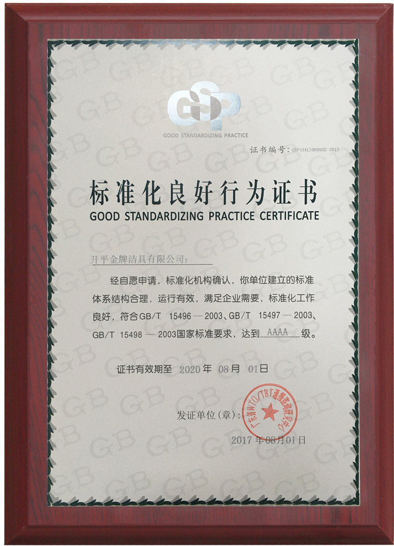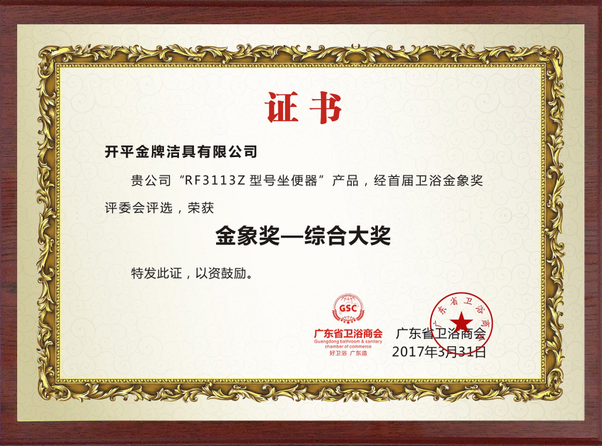 頒發單位:廣東省衛浴商會