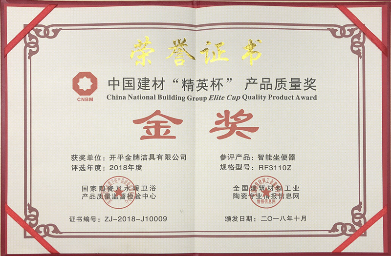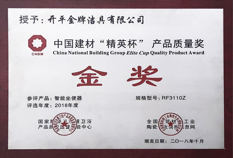 中國建材“精英杯”產品質量獎金獎(證書)